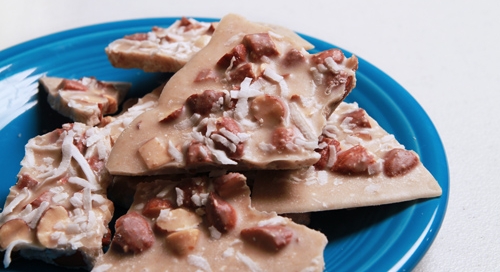 Another fast and easy candy recipe that will have your friends and family wondering how it can possibly be healthy! But, it is healthy, made with high-quality ingredients like coconut cream concentrate, coconut oil, and organic nuts.